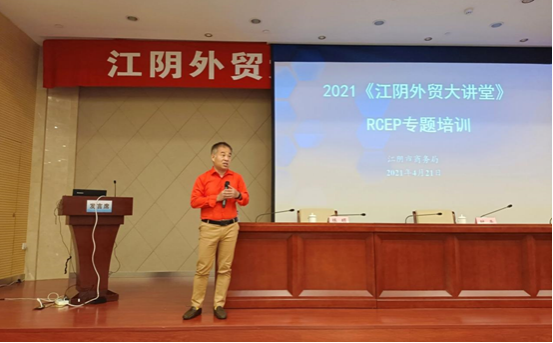 On April 21, Jiangyin Bureau of Commerce held the RCEP special lecture in comprehensive building. All members from Jiangyin Bureau of Commerce, representatives from Jiangyin Customs, towns, comprehensive insurance zone, banks and important foreign trade companies attended.